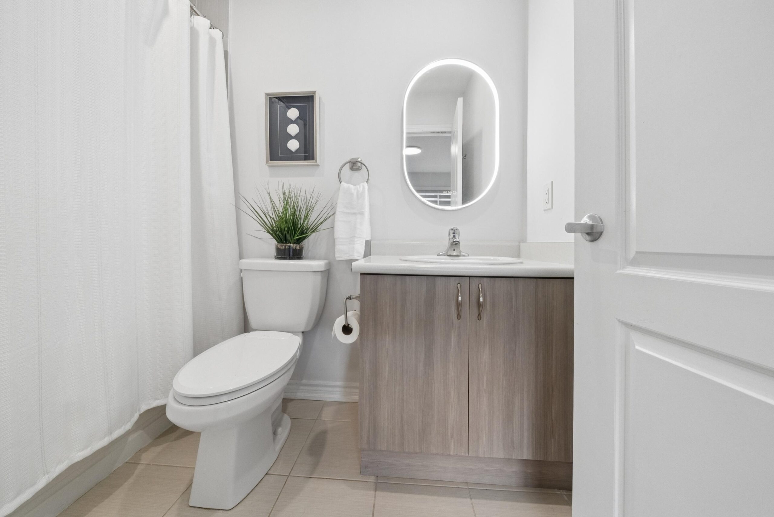 Thoughtfully upgraded throughout, this home includes vinyl flooring (2025), hardwood stairs (2025), pot lights in the living room and bathrooms (2025), backlit smart bathroom mirrors (2025), and a smart thermostat (2025). Additional updates include washer & dryer (2020), blinds (2020), and garage door opener (2020).